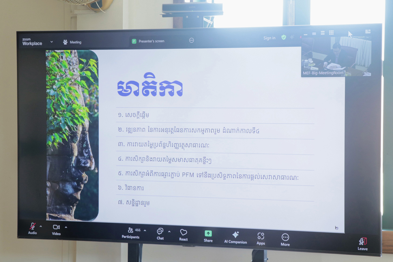 កិច្ចប្រជុំគណៈកម្មាធិការដឹកនាំការងារកែទម្រង់ការគ្រប់គ្រងហិរញ្ញវត្ថុសាធារណៈ ដើម្បីពិនិត្យ និងពិភាក្សាលើរបាយការណ៍តាមដាន និងវាយតម្លៃប្រចាំឆ្នាំ២០២៥ នៃការអនុវត្តកម្មវិធី កែទម្រង់ការគ្រប់គ្រងហិរញ្ញវត្ថុសាធារណៈ ដំណាក់កាលទី៤