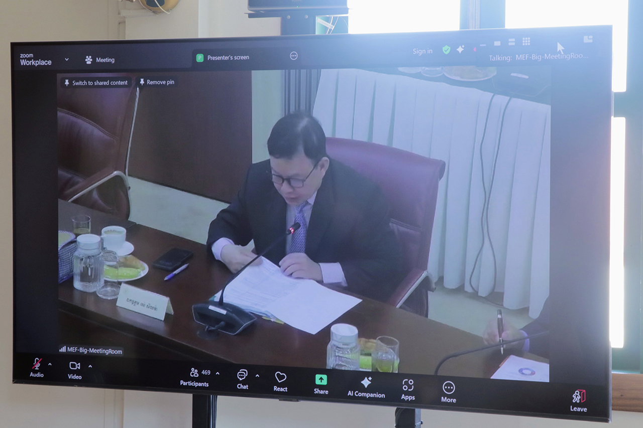 (បាត់ដំបង)៖ ថ្ងៃអង្គារ ១រោច ខែមាឃ ឆ្នាំម្សាញ់ សប្ដស័ក ព.ស.២៥៦៩ ត្រូវនឹងថ្ងៃទី៣ ខែកុម្ភៈ ឆ្នាំ២០២៦, លោក ប៉ោទ្រី ឌឿន ប្រធានមន្ទីរ និងមន្ត្រីរាជការ នៃមន្ទីរសេដ្ឋកិច្ច និងហិរញ្ញវត្ថុខេត្ត បានចូលរួមកិច្ចប្រជុំគណៈកម្មាធិការដឹកនាំការងារកែទម្រង់ការគ្រប់គ្រងហិរញ្ញវត្ថុសាធារណៈ ដើម្បីពិនិត្យ និងពិភាក្សាលើរបាយការណ៍តាមដាន និងវាយតម្លៃប្រចាំឆ្នាំ២០២៥ នៃការអនុវត្តកម្មវិធី កែទម្រង់ការគ្រប់គ្រងហិរញ្ញវត្ថុសាធារណៈ ដំណាក់កាលទី៤ ក្រោមអធិបតីភាពដ៏ខ្ពង់ខ្ពស់ ឯកឧត្តមអគ្គបណ្ឌិតសភាចារ្យ អូន ព័ន្ធមុនីរ័ត្ន ឧបនាយករដ្ឋមន្ត្រី រដ្ឋមន្ត្រីក្រសួងសេដ្ឋកិច្ច និងហិរញ្ញវត្ថុ តាមរយៈ Video conference system (ZOOM App) ៕