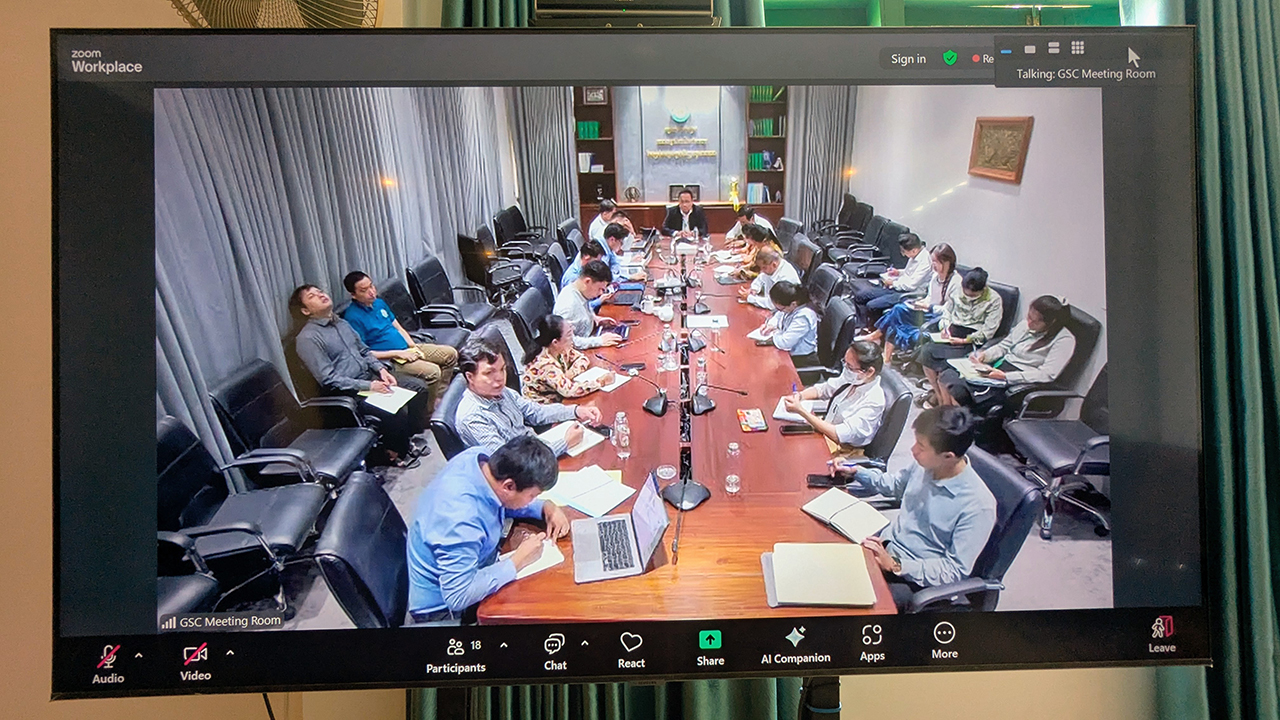 កិច្ចប្រជុំជាមួយសមាជិកគណៈកម្មការប្រតិបត្តិសមាគម តាមរយៈ Video conference system (ZOOM App)