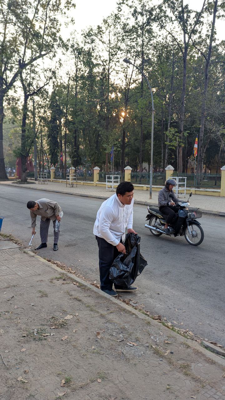 (បាត់ដំបង)៖ ថ្ងៃច័ន្ទ ៨កើត ខែមាឃ ឆ្នាំម្សាញ់ សប្ដស័ក ព.ស.២៥៦៩ ត្រូវនឹងថ្ងៃទី២៦ ខែមករា ឆ្នាំ២០២៦, មន្ត្រីរាជការ នៃមន្ទីរសេដ្ឋកិច្ច និងហិរញ្ញវត្ថុខេត្ត បានចូលរួមទិវាអនាម័យបរិស្ថានជាតិ ២៣ វិច្ឆិកា ២០២៥ ក្រោមប្រធានបទ “ទម្លាប់ស្អាត គ្រួសារ ស្អាត បរិស្ថានល្អ” ក្រោមអធិបតីភាពឯកឧត្តម ឆាយ ម៉ាទីណាល់ អភិបាលរង នៃគណៈអភិបាលខេត្ត តំណាងឯកឧត្តម សុខ លូ អភិបាល នៃគណៈអភិបាលខេត្តបាត់ដំបង នៅបរិវេណសួនសម្តេចក្រឡាហោម វិមានឯករាជ្យ និងបានធ្វើការសម្អាតអនាម័យបរិស្ថានតាមដងផ្លូវផងដែរ៕